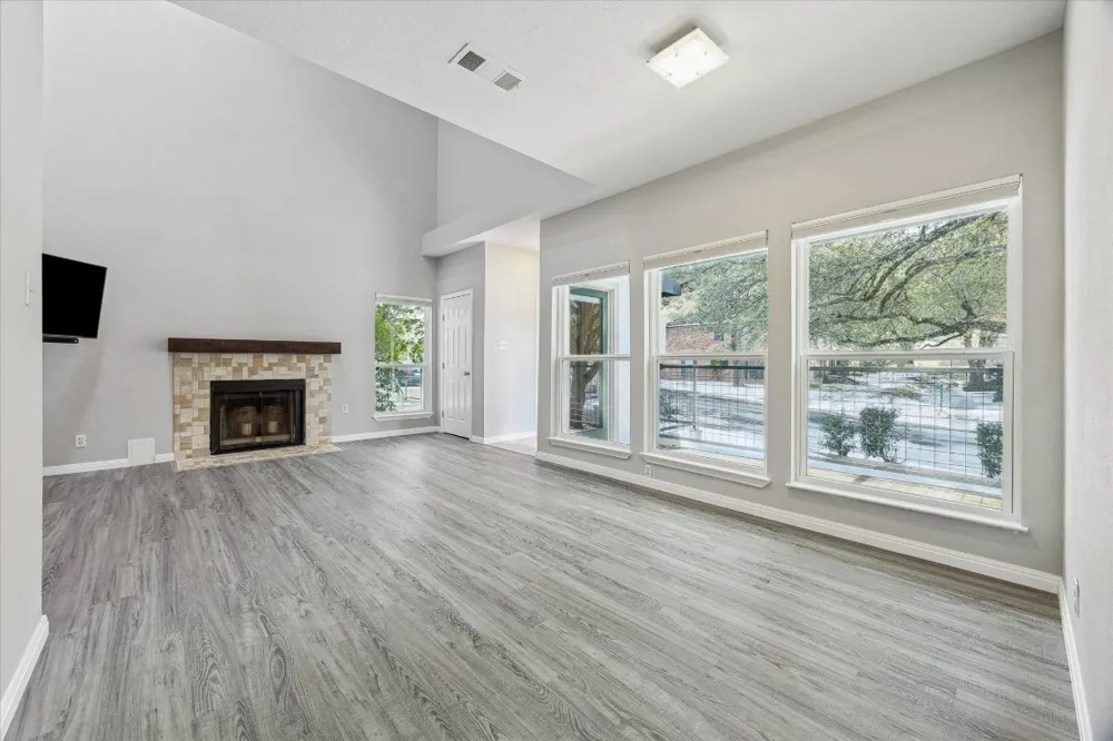 Welcome to 6600 Valleyside Rd #D17! The unit features ample natural light with high ceilings in the living room, large wall-to-wall windows in the dining room, two primary en suites, and a covered patio. The community is lined with mature trees, and has a community pool and reserved parking. This conveniently located Far West condo is surrounded by mature trees, with easy access to Mopac, downtown Austin, and The Domain.