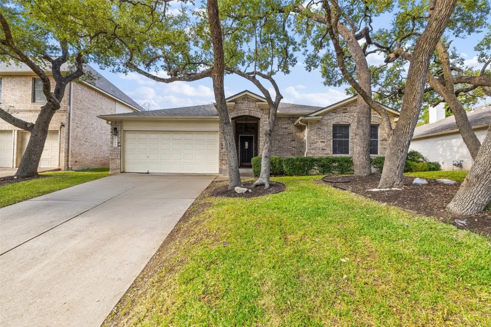 Beautiful single story residence in the highly sought Woods of Legend Oaks. Featuring a timeless exterior, mature trees, and a convenient 2-car garage. Inside, you'll be greeted with high ceilings and a fantastic functional floor plan. The family room flows effortlessly into the kitchen, which boasts ample cabinetry, granite countertops, and a breakfast bar. Sleek stainless-steel appliances, including a gas range and refrigerator, complete this gourmet kitchen. The primary suite ensures privacy and comfort, featuring two walk-in closets and a spa-like en-suite bathroom with granite-topped vanities, a soaking tub, and a separate walk-in shower. Accompanied by two additional bedrooms and a guest bathroom. The backyard backing to a green belt is perfect for outdoor gatherings, featuring a covered patio, fire pit, and complete with landscape lighting. The neighborhood offers a playground and is conveniently close to Dick Nichols District Park, Circle C Park, and tons of shopping including HEB, Costco, Whole Foods, and more!